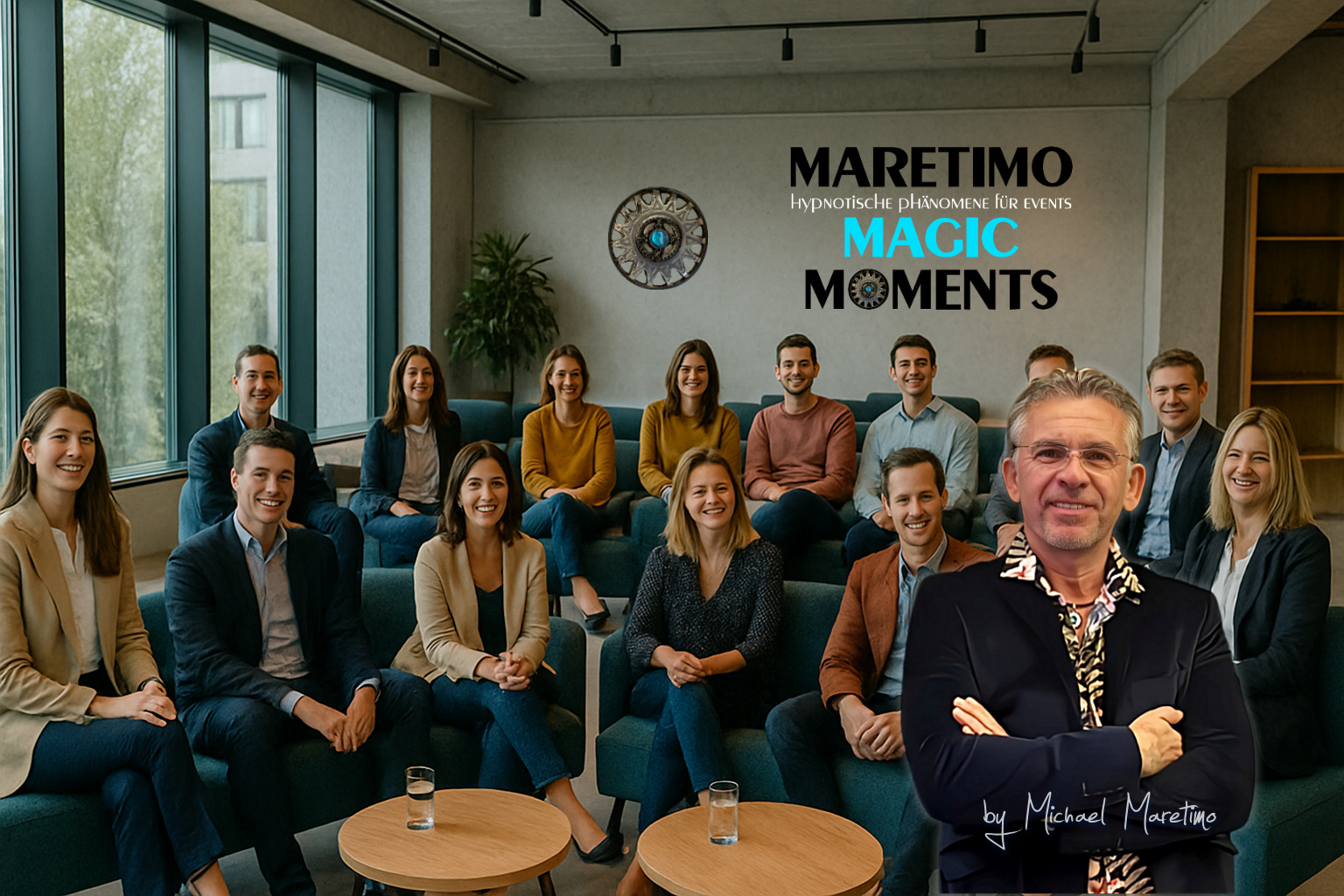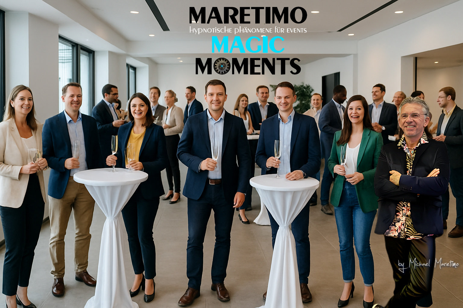 „Michael Maretimo“ ist zertifizierter Hypnotiseur & NLP-Coach. Er begeistert mit viel Charme, Humor und einer Prise Magie. Seine positive & unterhaltsame Art und die Interaktion mit den Teilnehmern, macht jede Veranstaltung zu einem unvergesslichen Erlebnis.
